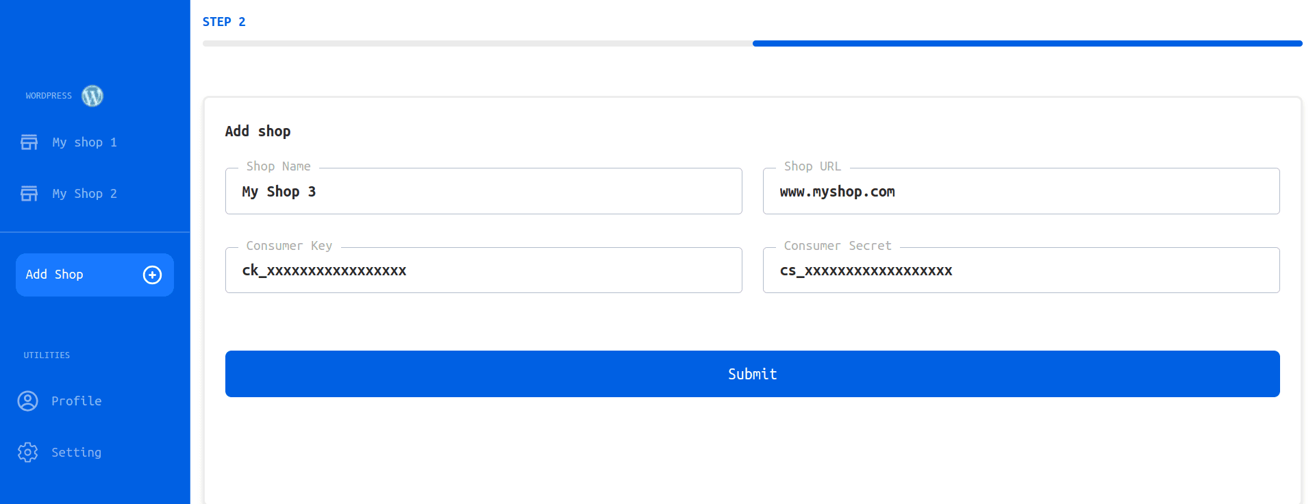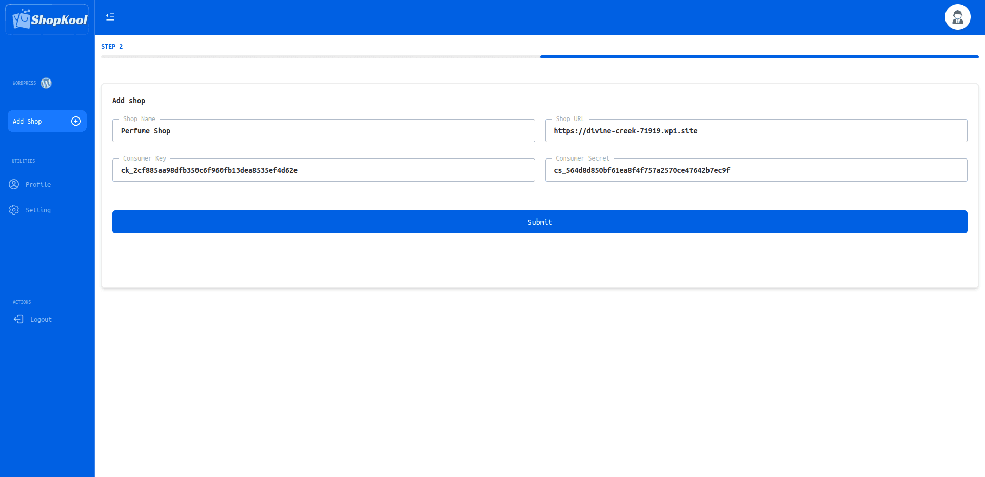 - Submit Information: Click the "Submit" button to add the store. Once added, it will appear in your list of connected stores.