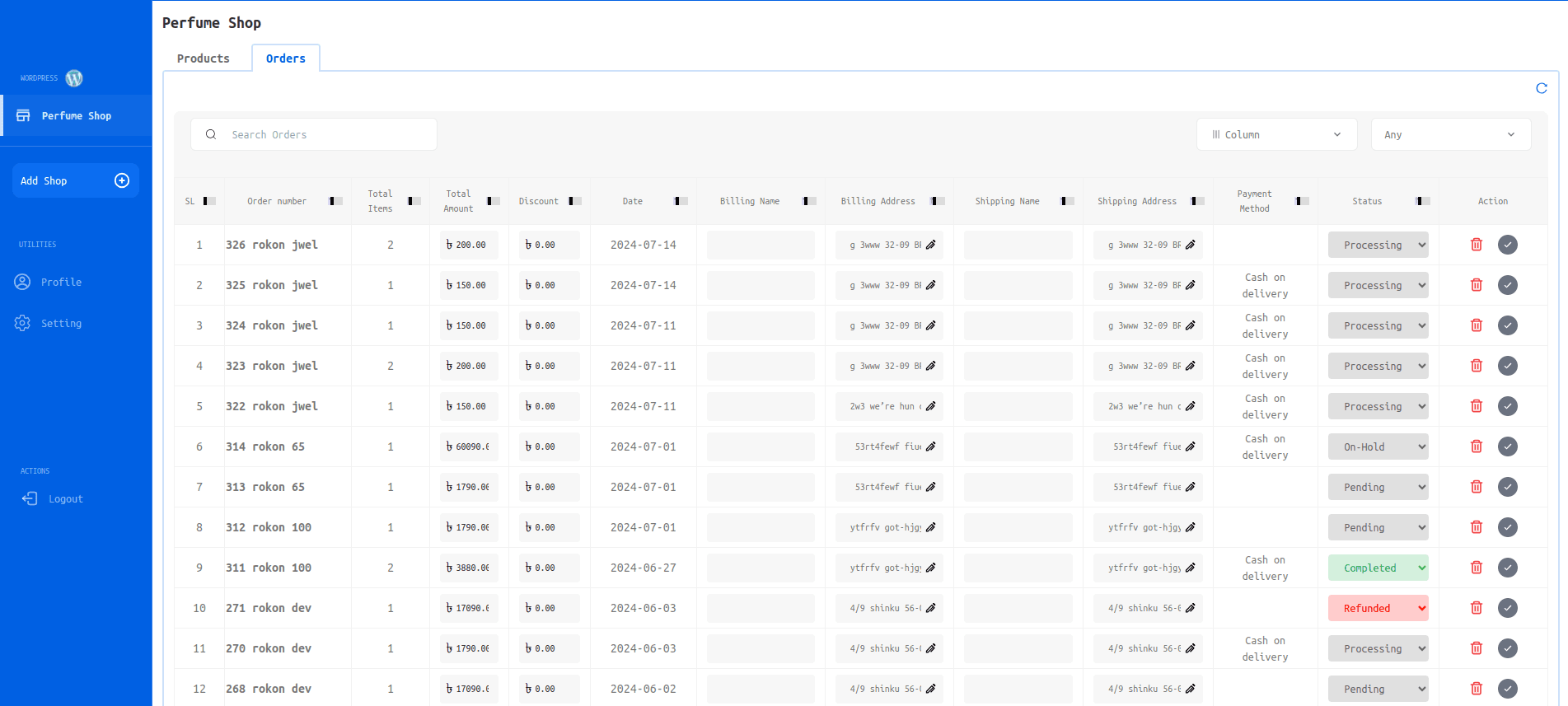 - Batch actions such as processing refunds, marking orders as completed, or changing order statuses.