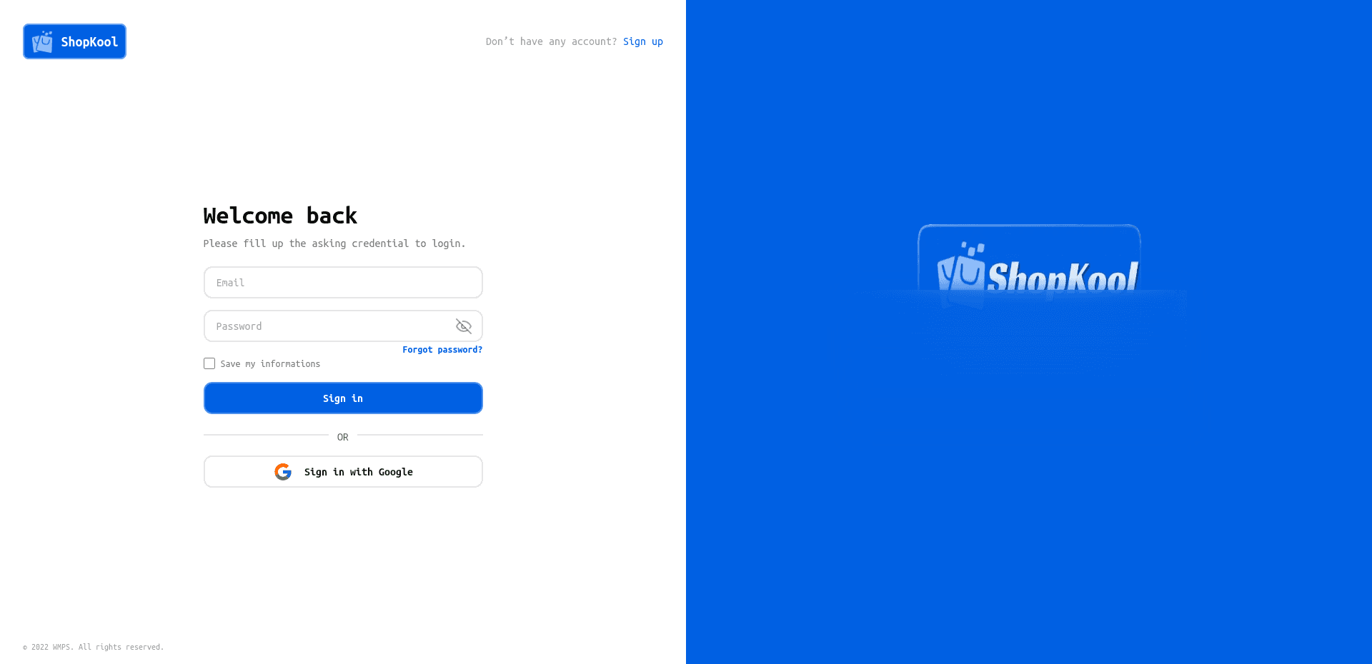 To get started with StoreKool, you can log in using your email and password or via your Google account. Follow these steps: